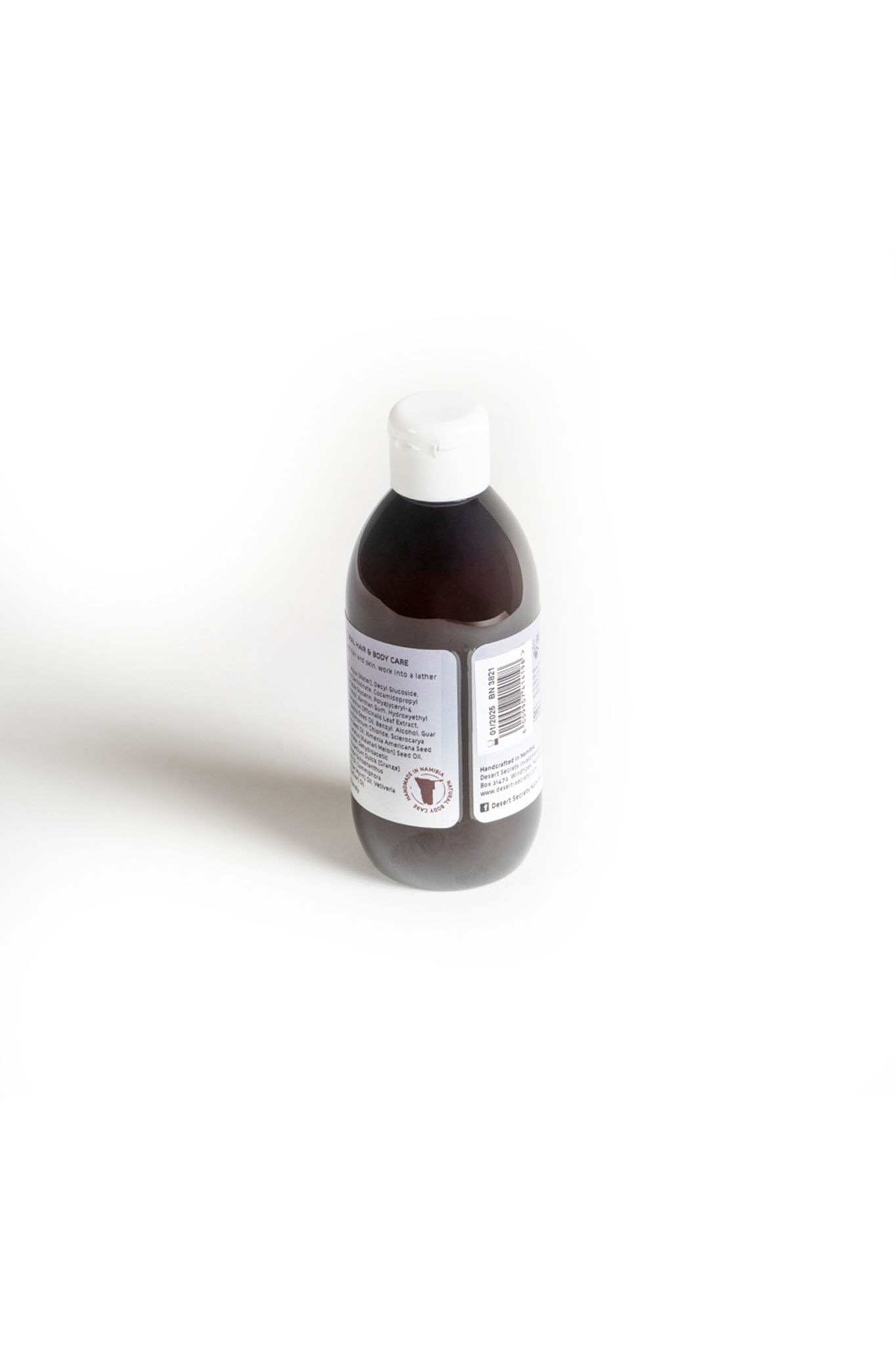 Packed in a 200 ml, amber colored container sporting a practical pump dispenser