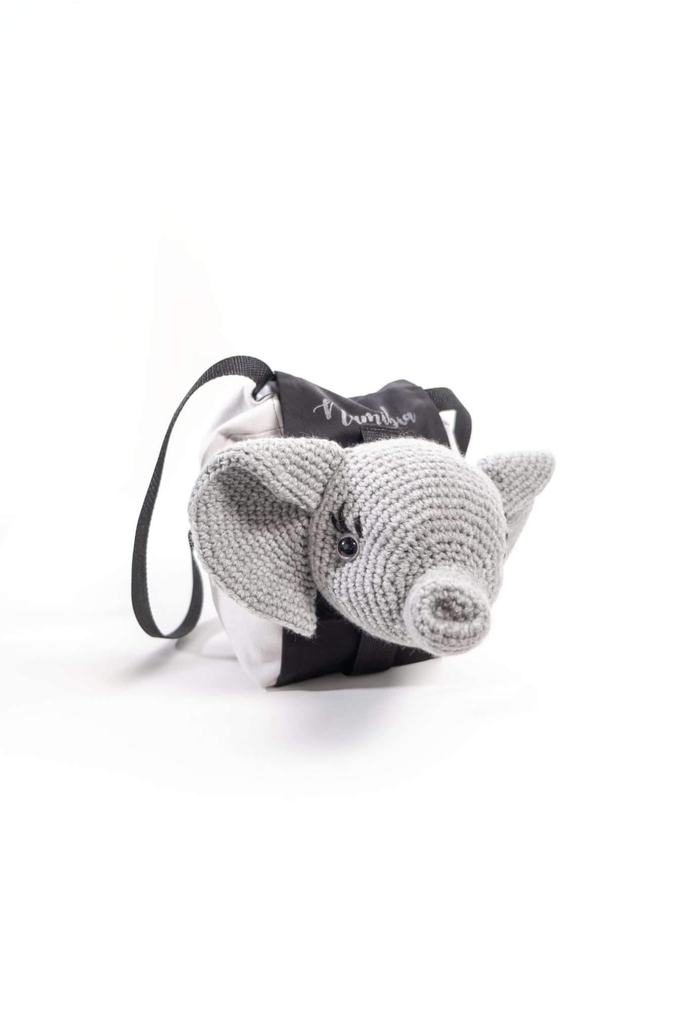 Removable Crochet Zebra or Elephant head on front with velcro closure