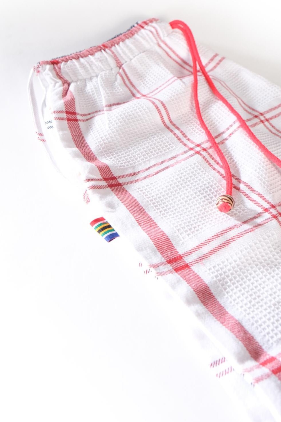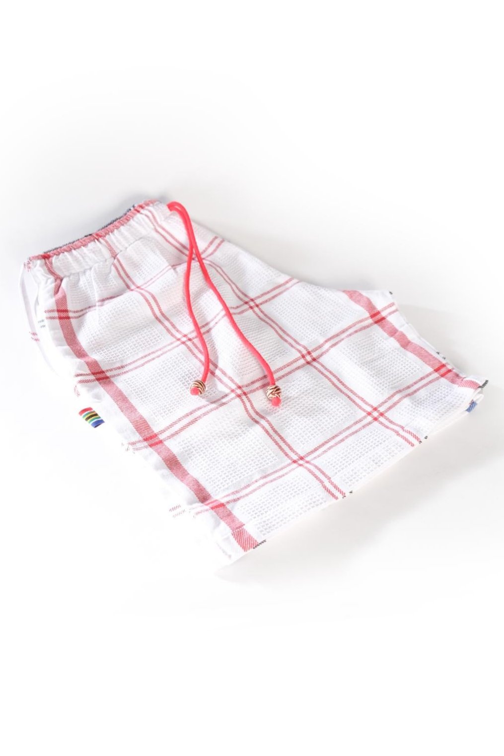 Cool shorts made from cotton tea towels with an elastic band and drawstring closure