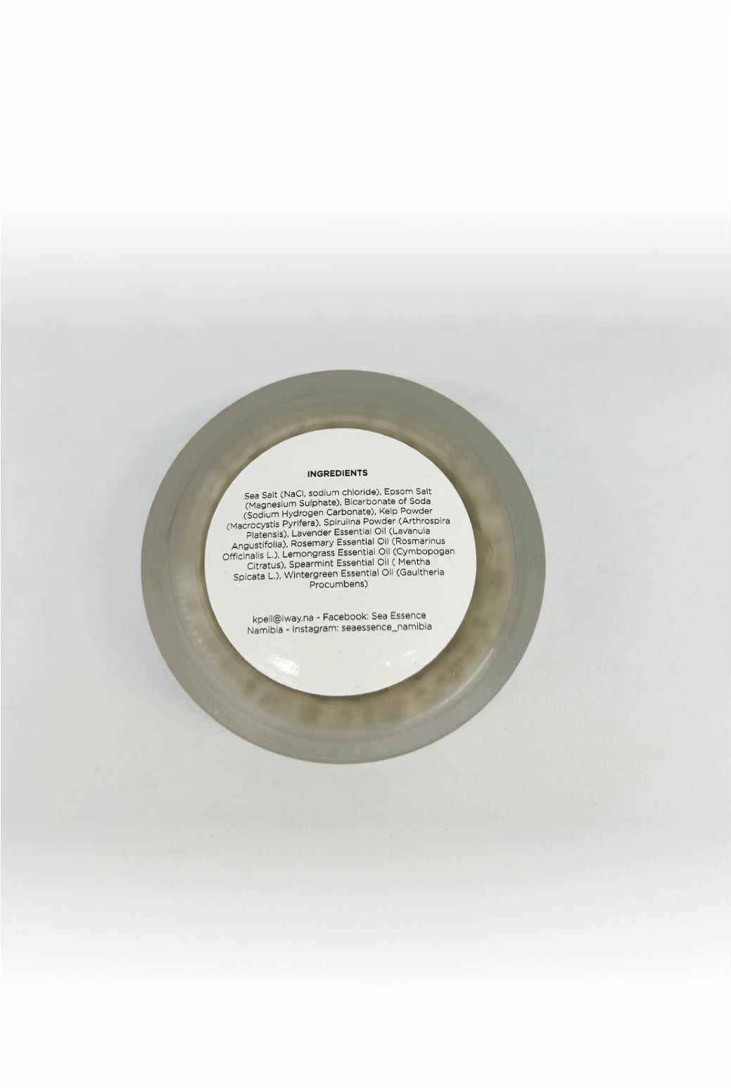 Un produit de traitement Spa interne haut de gamme composé de sel de mer provenant de nos eaux côtières glacées de l'Atlantique, mélangé avec des huiles essentielles telles que l'huile de pépins de melon Marula, Ximena et Tsamma et complété par du miel namibien et du beurre de karité