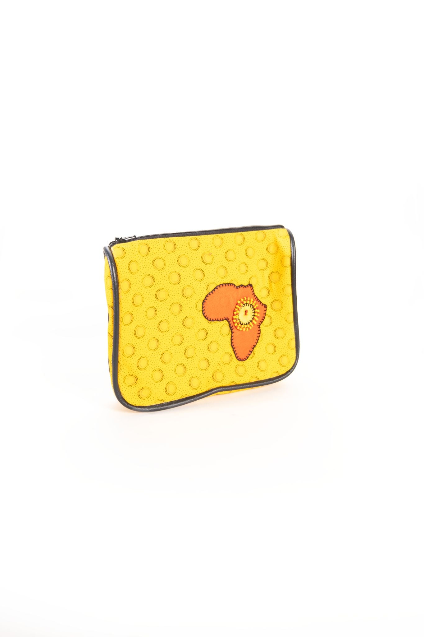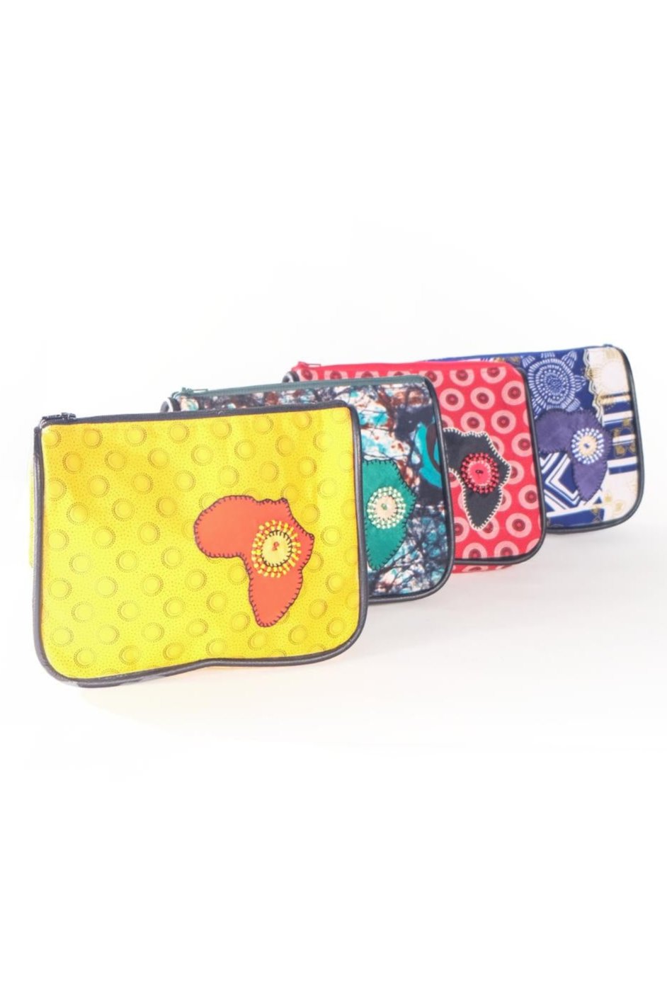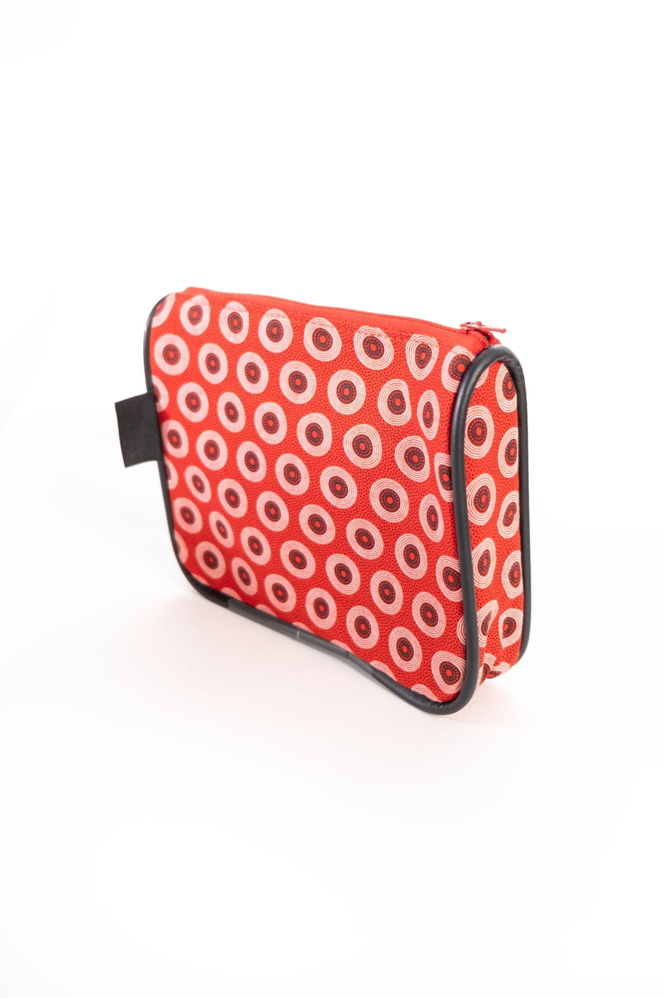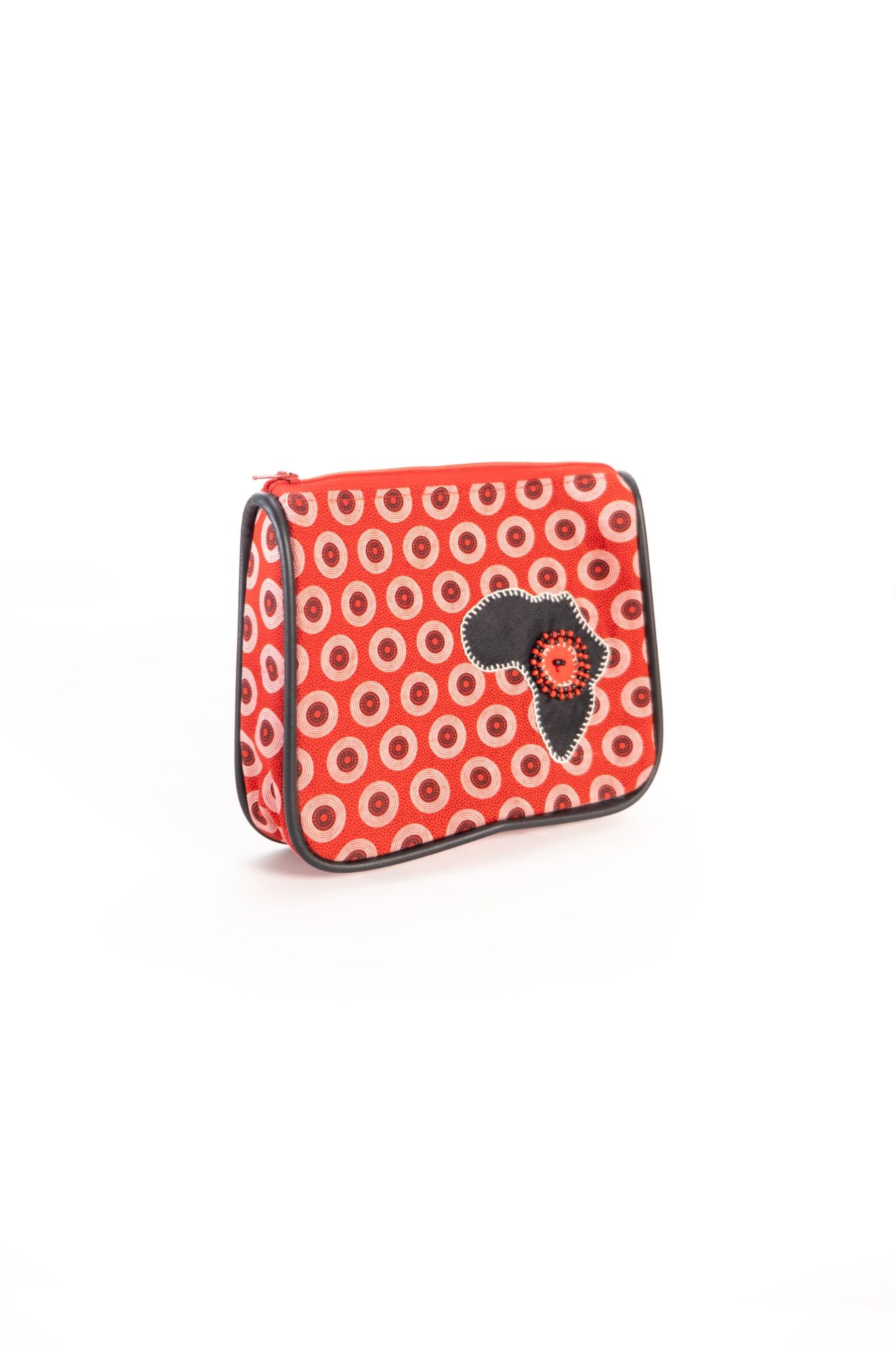 Wash bag made from African cloth with African outline embroidered and beaded application