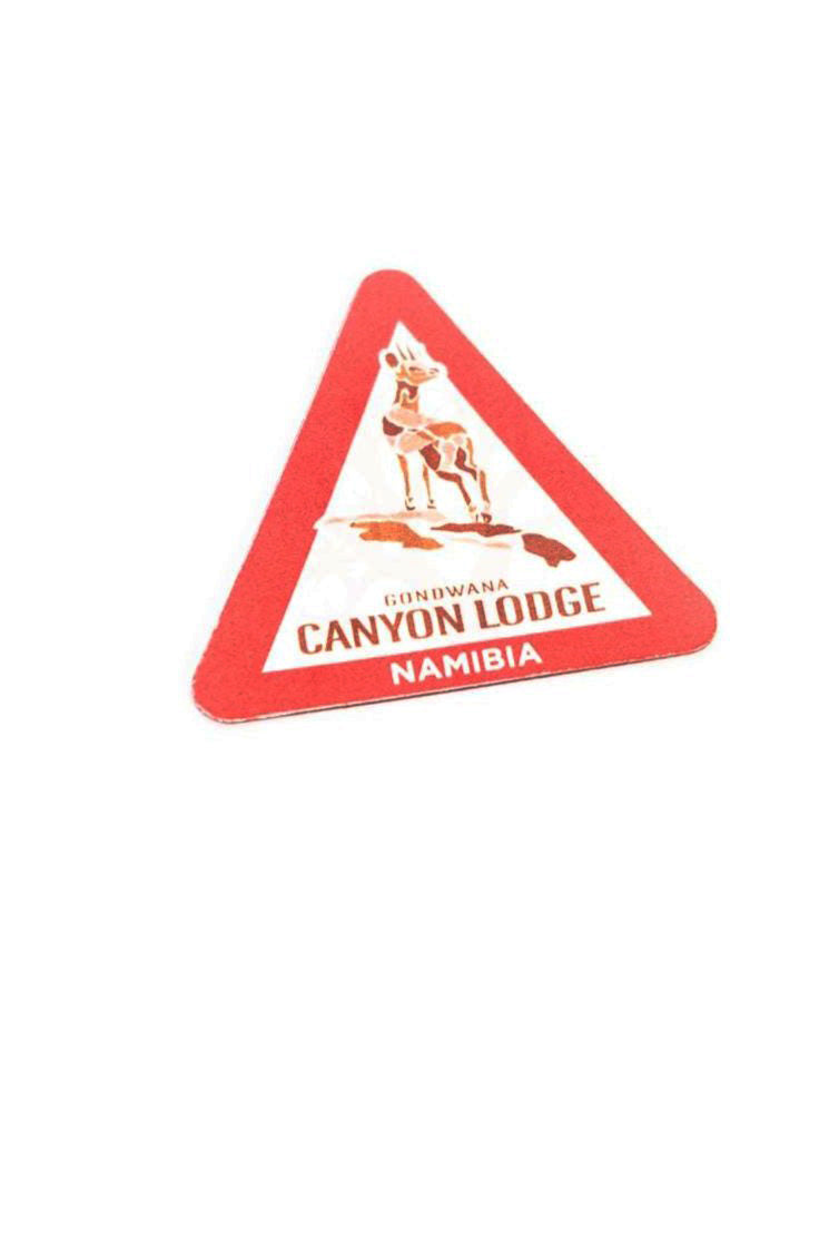 A magnet made from vinyl material with the Canyon Lodge logo