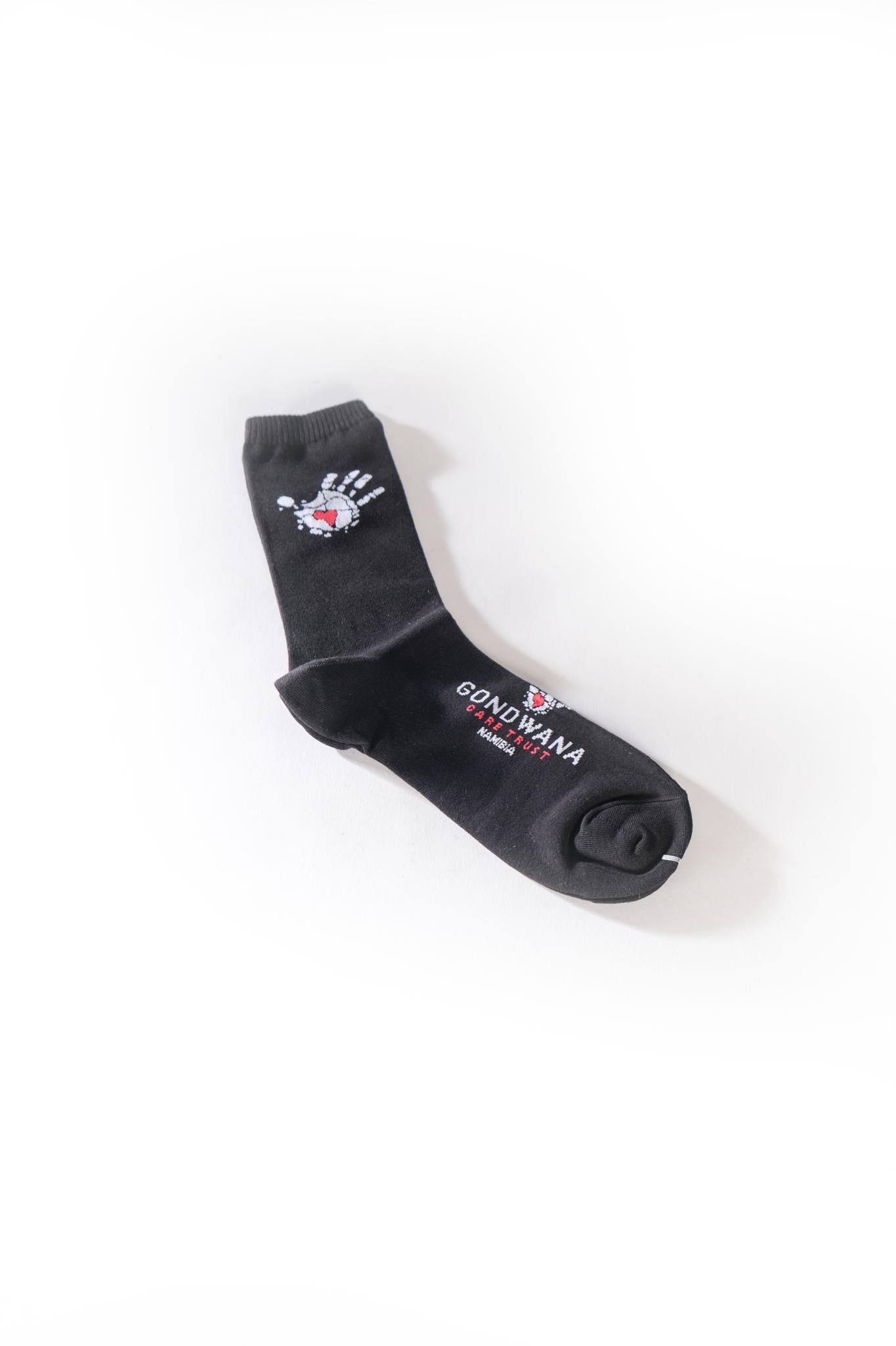Designed by a young Namibian college student; he donates a pair of socks to a child for every pair that we sell! Read more about Gondwana Care Trust