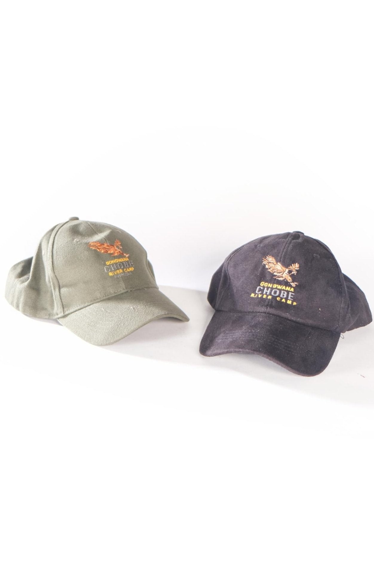 A 6 panel imitation suede cap in full color embroidery of Chobe River Camp Logo