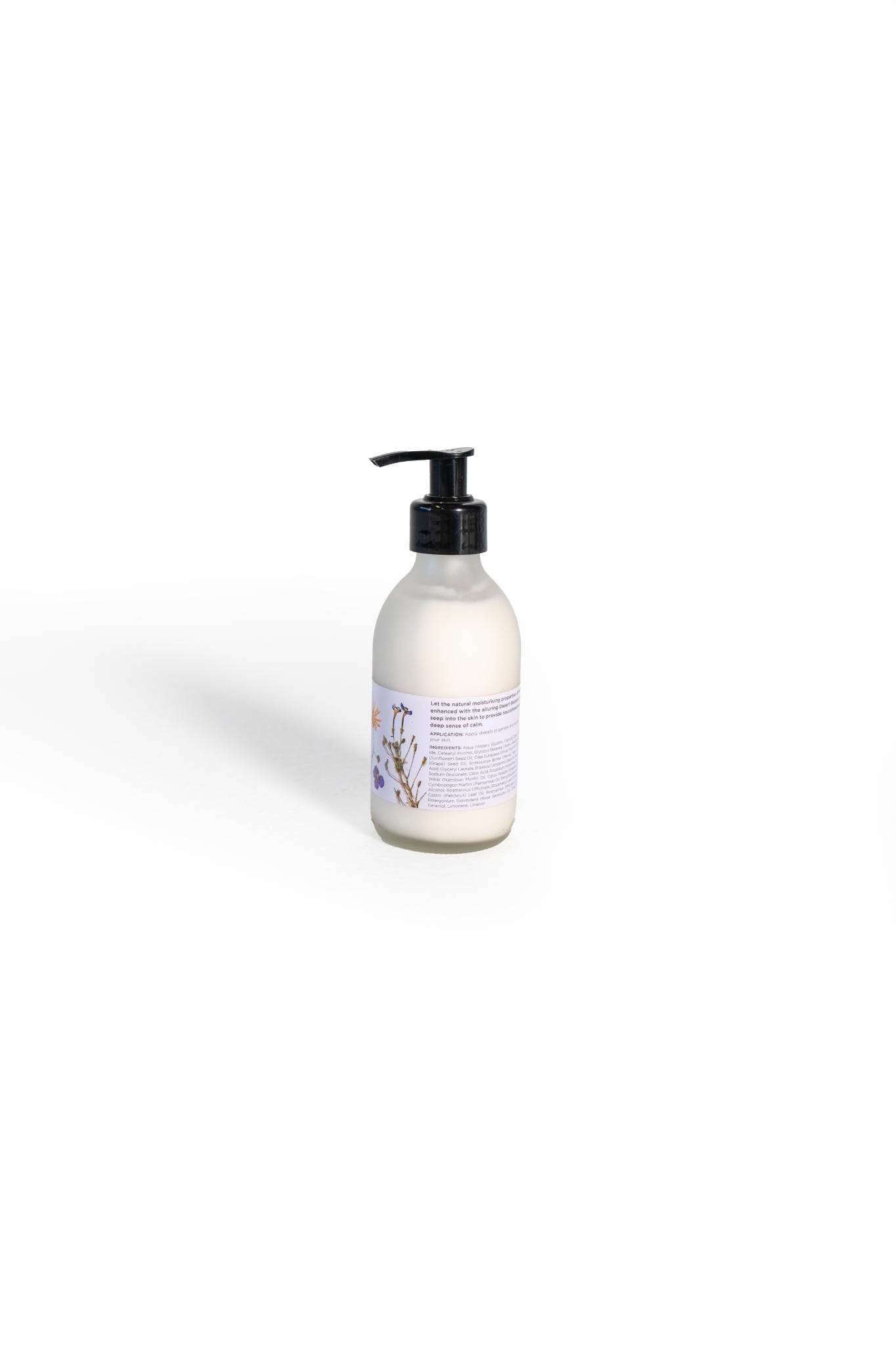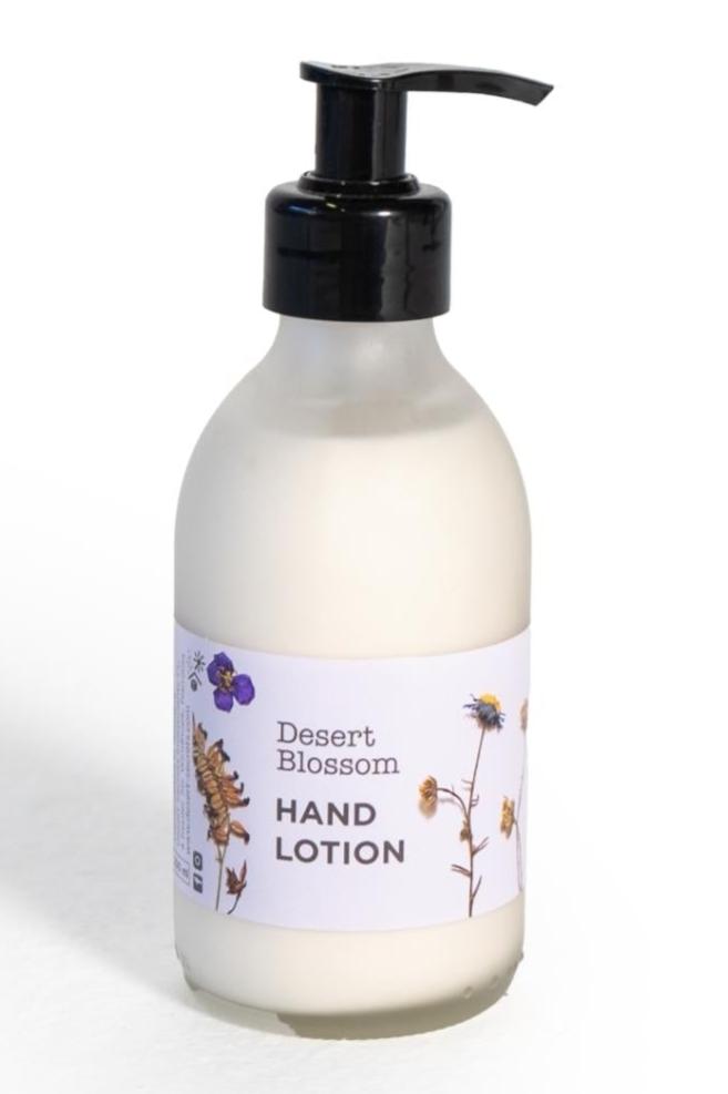 A 200 ml hand & body lotion made from nourishing Marula Oil and Namib Myrrh in a frosted glass container and practical pump dispenser