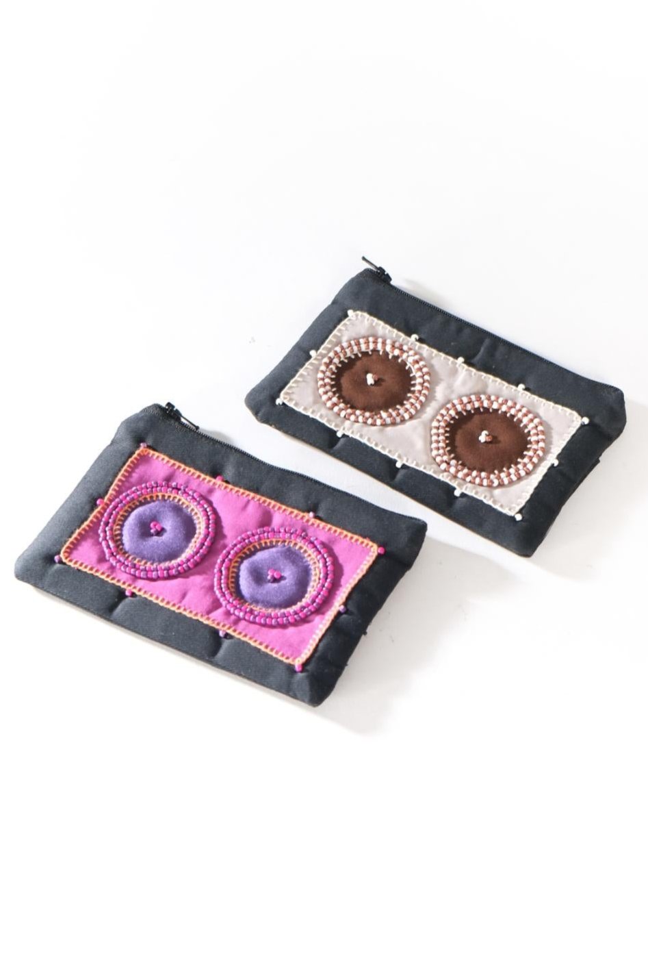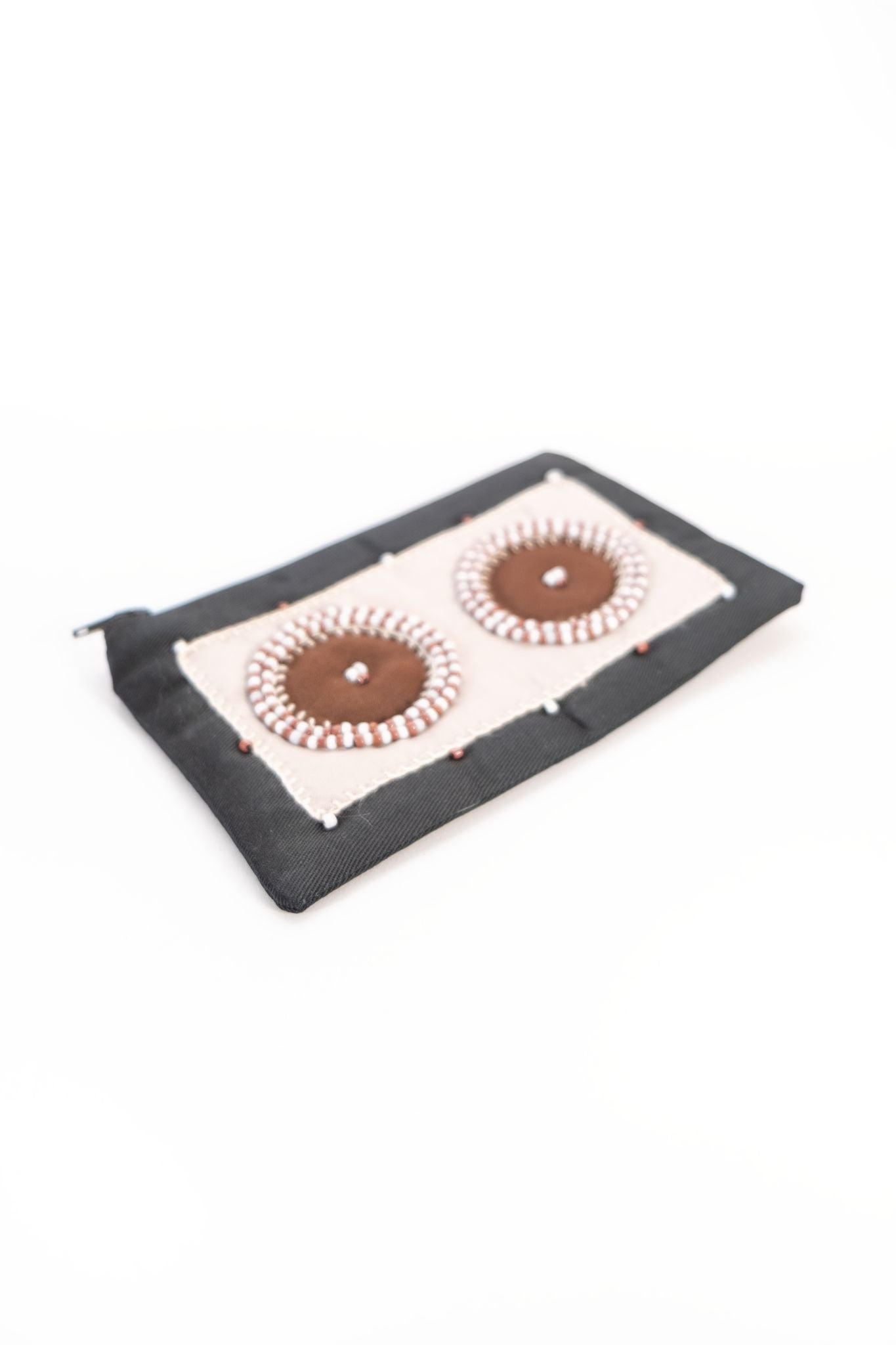 Large purse made from 100% cotton with African outline embroidered embellished with beaded application
