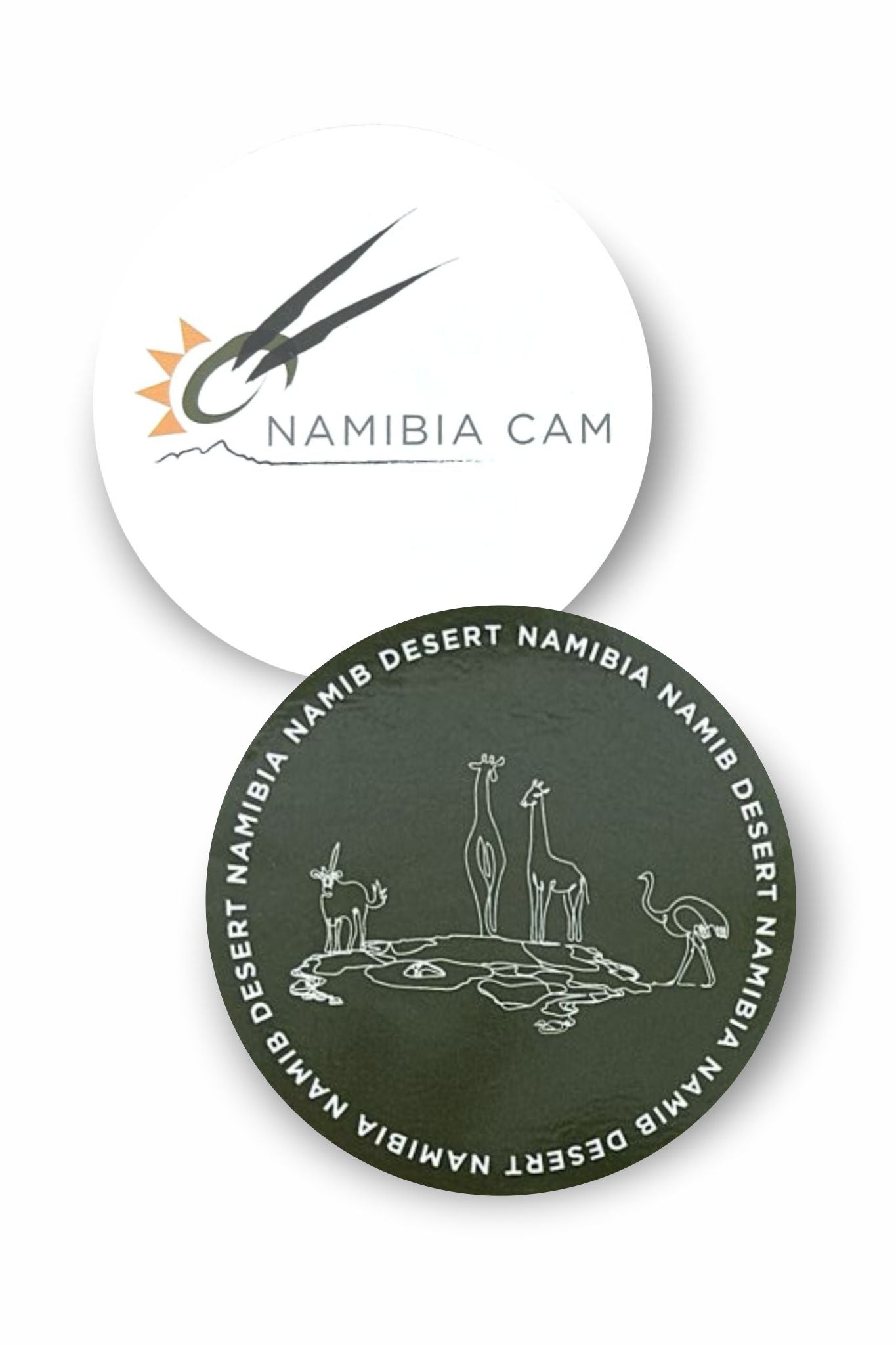A clear and prominent NamibiaCam License disc sticker in aid of the Namib Desert waterhole: nothing more, nothing less