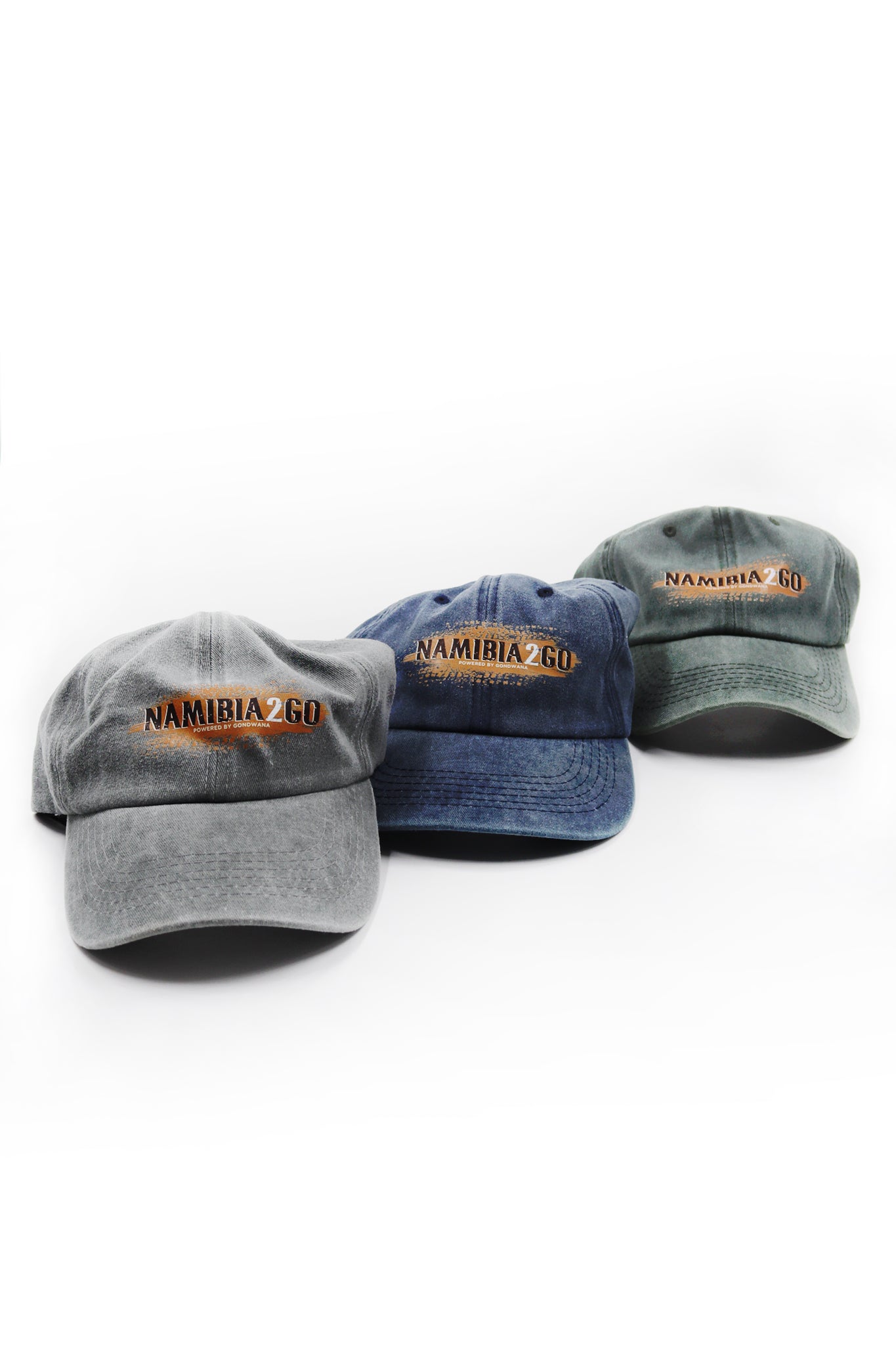 A stone washed, soft 6 panel cap sporting our Namibia2Go logo on the front
