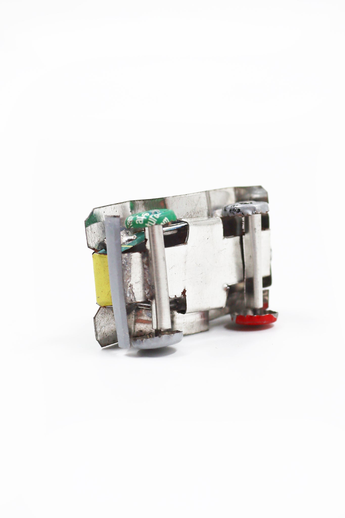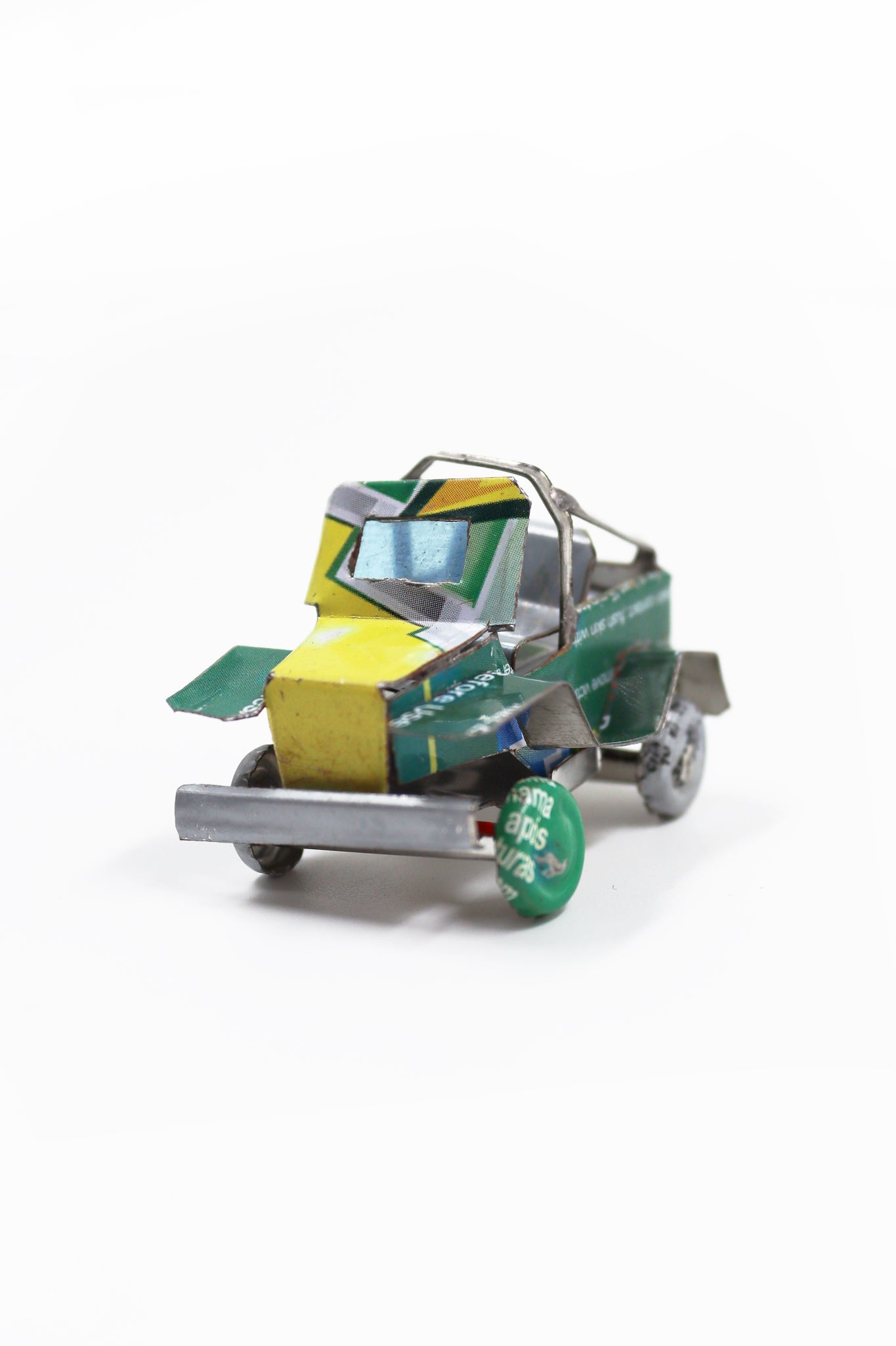A truly tiny car made from recycled aluminum cans that easily fits into the palm of your hand