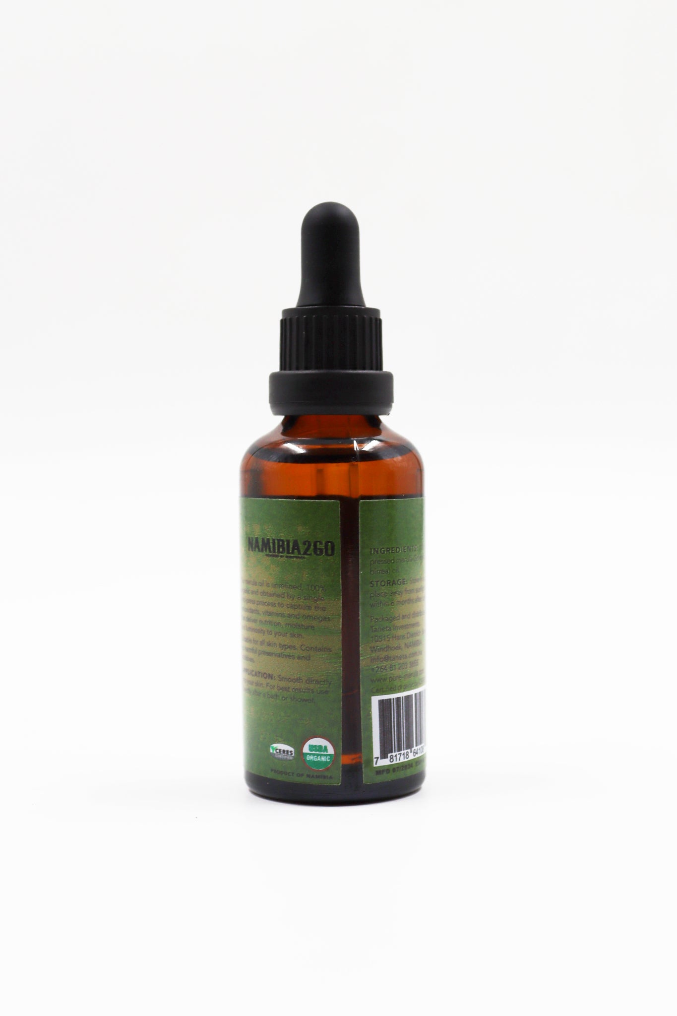 Made in Namibia from 100% certified organic, unrefined cold pressed Marula oil