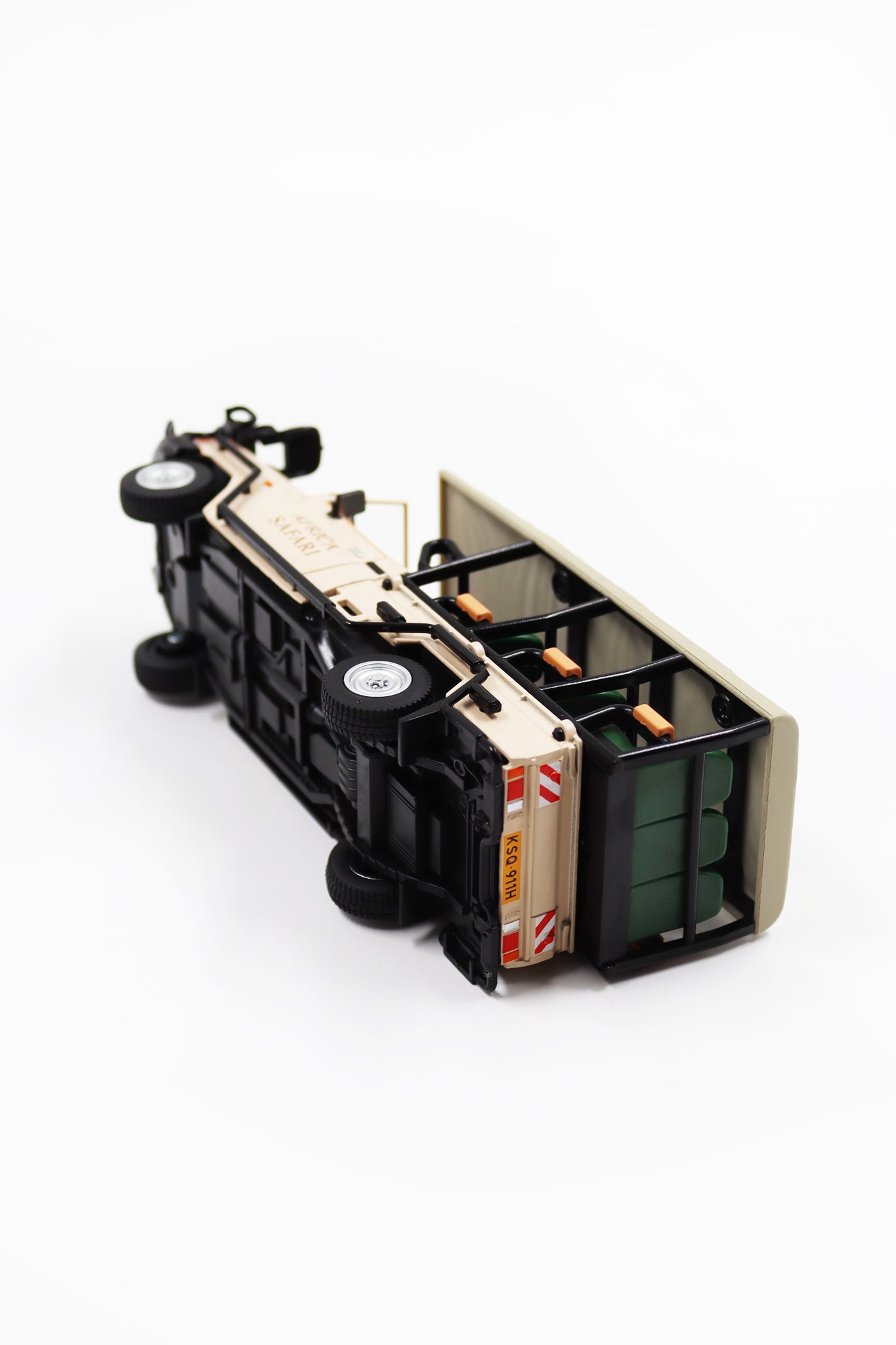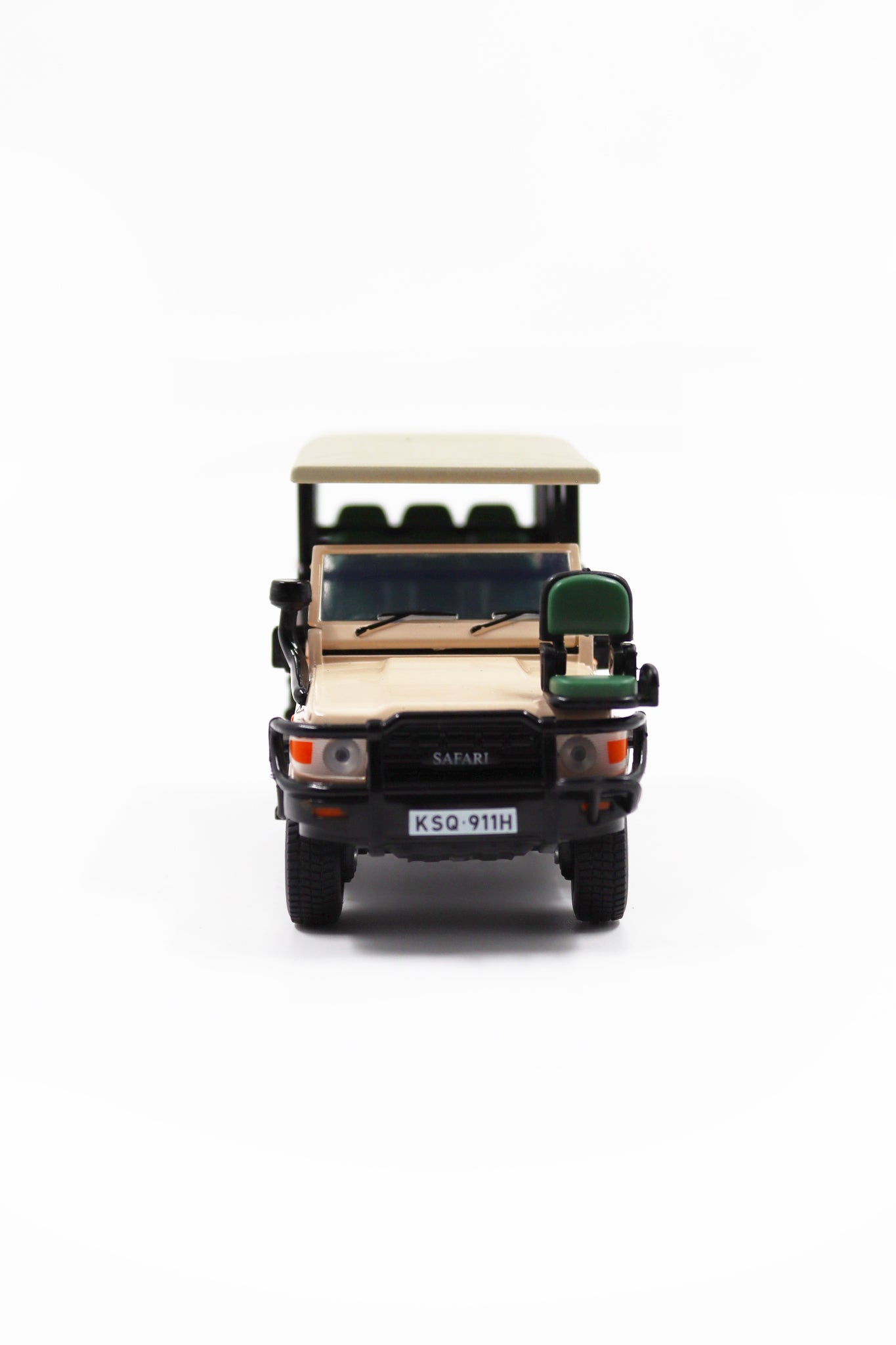 Classic East African Safari Game viewer vehicle with canvas tarp, snorkel and opening doors and turning wheels