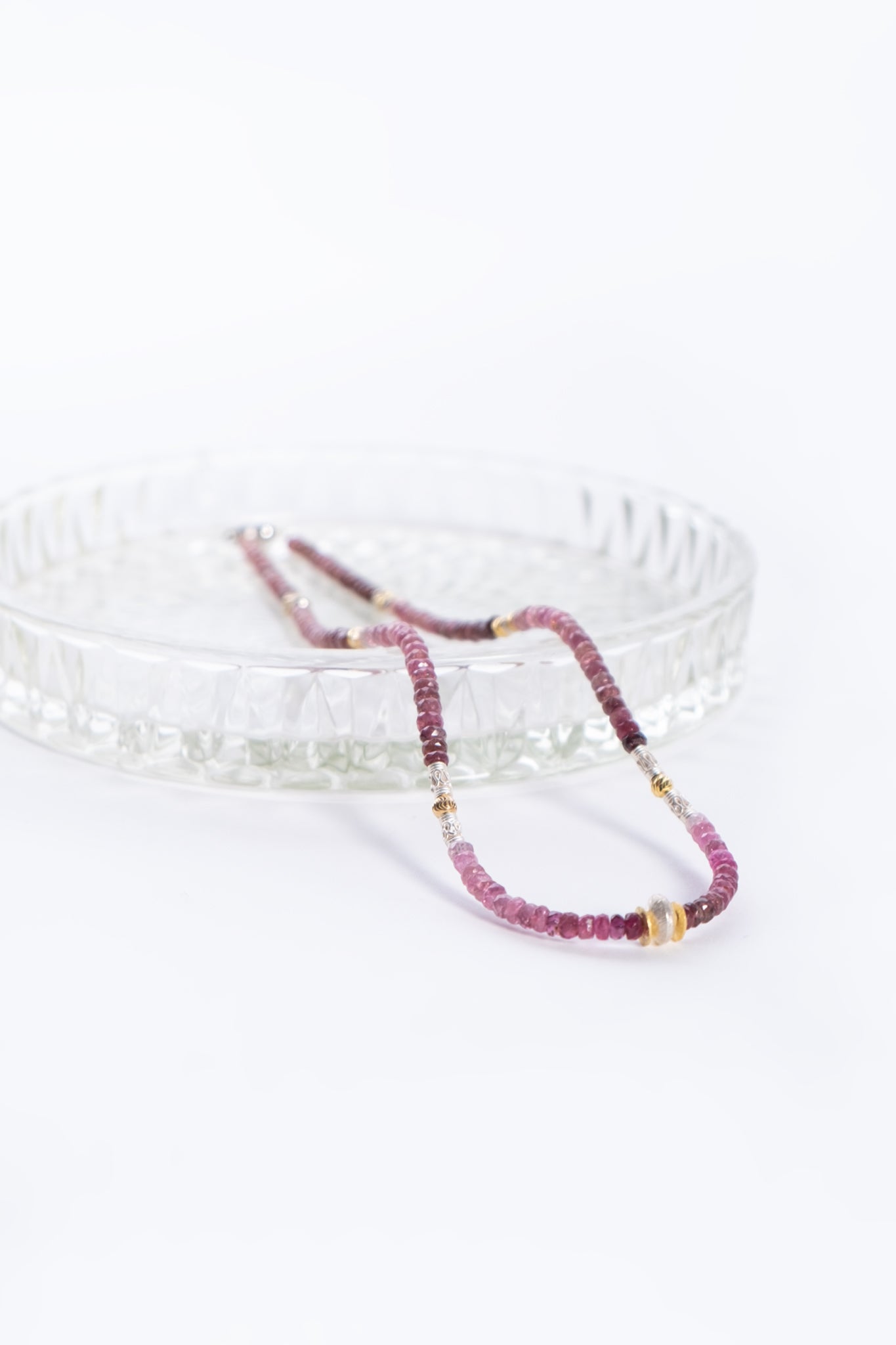 A fine, romantic necklace laced with all the Tourmaline colors available under the Namibian sun